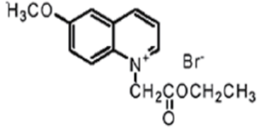 MQAE 是目前應(yīng)用最廣泛的新型氯離子熒光探針。與 SPQ(一種典型的氯離子指示劑,Ksv= 118 M-1)相比,MQAE對(duì)氯離子更敏感(Ksv= 200 M-1),并且熒光量子產(chǎn)率也更高。MQAE 以溴離子為配對(duì)陰離子,最大激發(fā)波長(zhǎng)約為 350 nm,最大發(fā)射波長(zhǎng)約為460 nm。當(dāng)氯離子濃度升高時(shí),MQAE的熒光強(qiáng)度隨著氯離子濃度的增加而成比例地減少。在氯離子濃度低于50 mM時(shí),MQAE 的熒光強(qiáng)度幾乎不受pH變化的影響。
